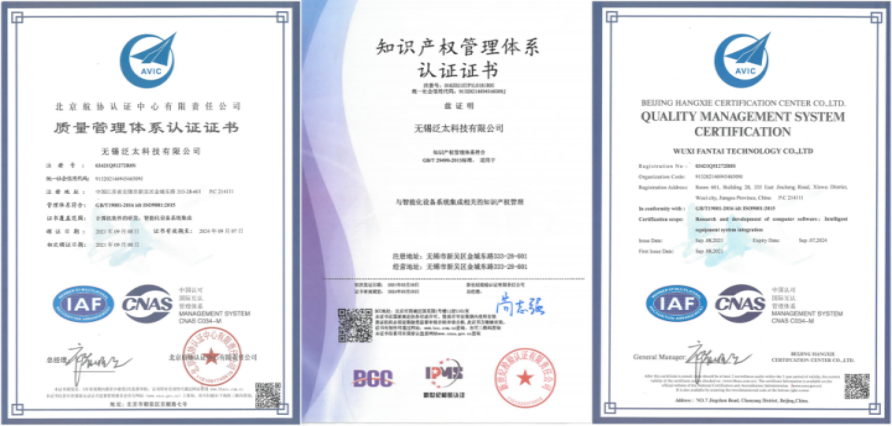 知識產(chǎn)權、質(zhì)量管理體系認證證書(shū)