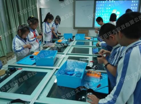 學(xué)生活動(dòng)操作平臺,配置桌椅,可以定制,也可以使用普通的課桌。寬闊的課桌和舒適的座椅,將會(huì )有更好的制作體驗。