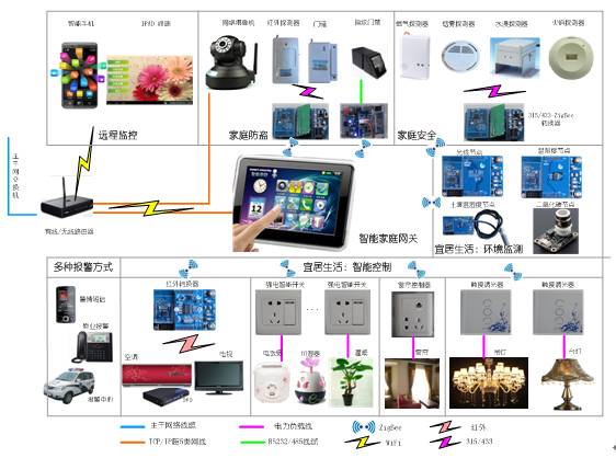 智能家居生活館主要由感知設備、安防設備、控制設備、監控設備、家庭網(wǎng)關(guān)、智能終端、家居裝修材料等組成。