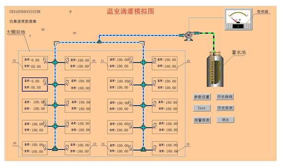 系統軟件主要是大田滴灌自動(dòng)控制系統軟件,它可采用組態(tài)或C#兩種軟件體系實(shí)現,具有良好的人機交互界面,如圖所示。