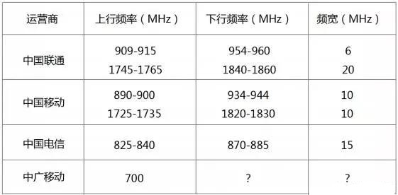 1.國內運營(yíng)商擁有的可使用的NB-IoT頻段?
