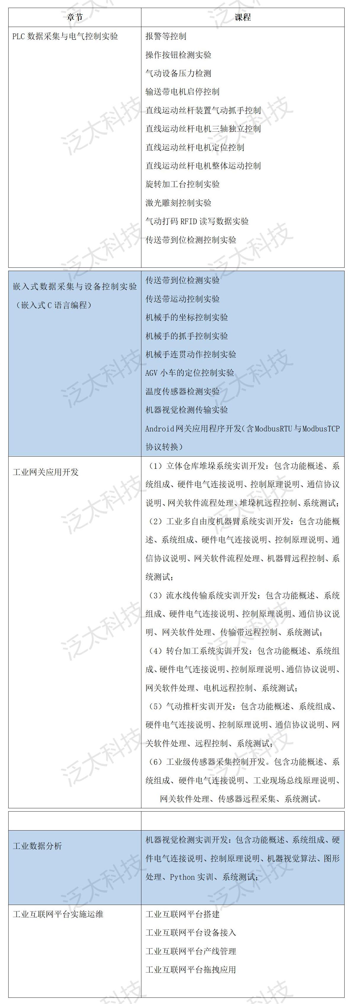 系統涵蓋立體倉庫堆垛機、加工轉臺、激光雕刻機、多自由度機器臂、AGV小車(chē)、機器視覺(jué)檢測裝置、流水線(xiàn)傳輸設備、RFID讀卡器、打碼裝置以及各種狀態(tài)監測傳感器,通過(guò)PLC電氣控制、嵌入式應用、AI機器視覺(jué)、工業(yè)現場(chǎng)總線(xiàn)和自組網(wǎng)通信等技術(shù),達到工業(yè)設備運動(dòng)控制、運行狀態(tài)監測,實(shí)現出庫、上料、寫(xiě)碼、雕刻、傳輸、檢測、運輸、打碼、讀碼、包裝、入庫等完整的工藝流程;通過(guò)智能網(wǎng)關(guān)和工業(yè)互聯(lián)網(wǎng)平臺,實(shí)現設備接入、數據采集、數據上云、產(chǎn)線(xiàn)管理、工件質(zhì)量分析、以及可視化應用。
